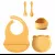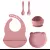 5PCS Silicone Baby Feeding Set with Suction Plate, Spoon, Fork & Bib